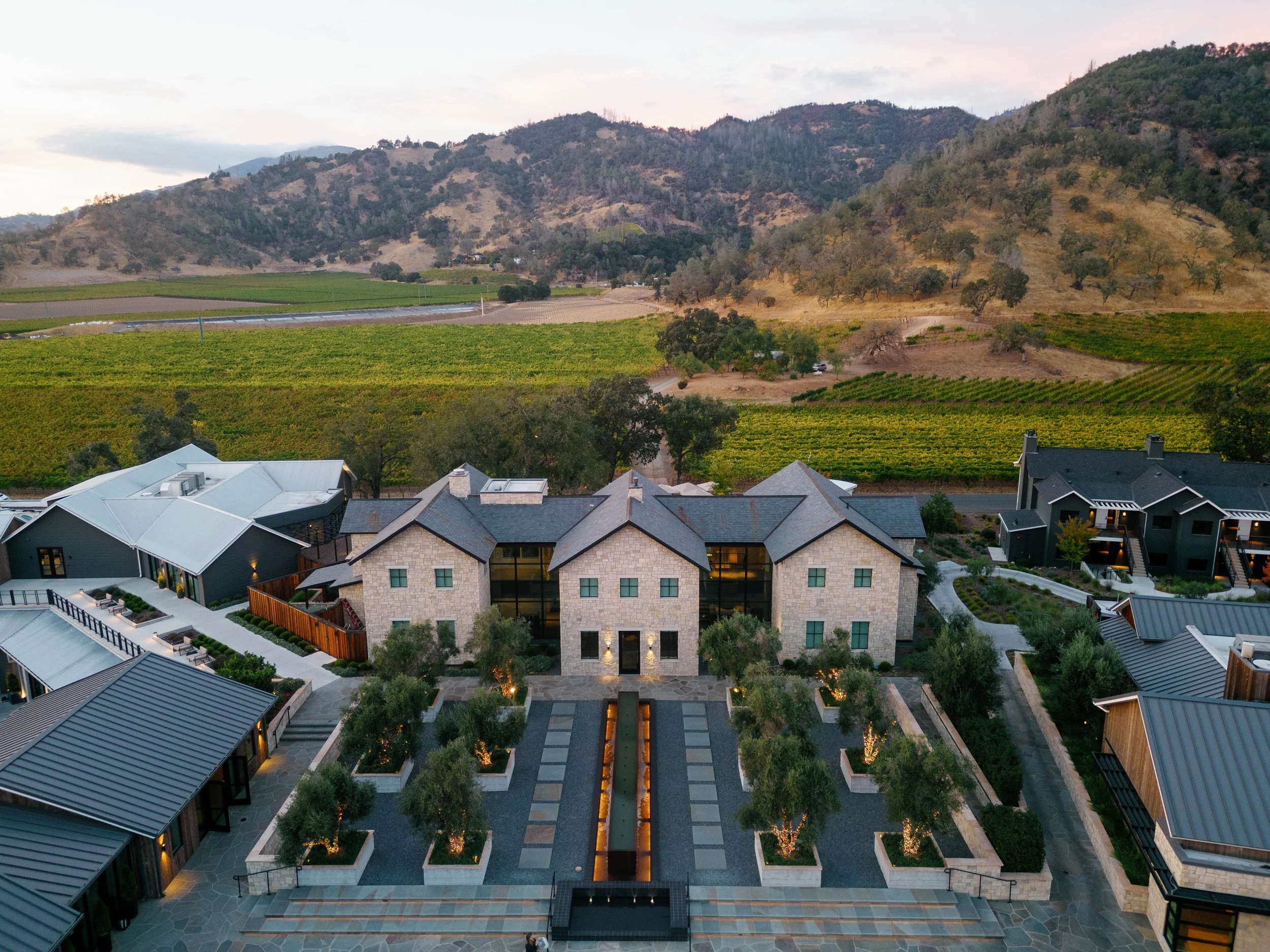 Four Seasons Napa Valley opened as a resort built within a working vineyard — specifically, a 5.6-acre estate in Calistoga — and the design reflects that intentionality. Unlike resorts that treat wine country as an aesthetic theme, this property is embedded in it. The Elusa Winery is on-site, and the Palisades mountain range serves as a consistent visual anchor from almost every vantage point on the grounds.